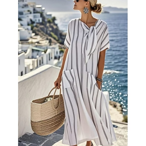 Per donna Abito maxi Vestito Estivo Casual Quotidiano Abito Autunnale Vestibilità comoda A righe Manica Corta Girocollo Azzurro cielo Cammello Viola Verde Autunno