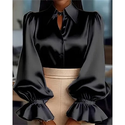 Per donna Camicia Elegant Elegante Raso/Satin Tinta unica Semplice Elegante Vintage Carino Manica Lunga Manica a Palloncino Colletto a Camicia Top Regolari Lavoro Quotidiano Ferie Arricciato