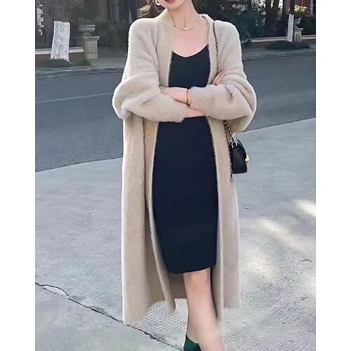 Per donna Felpa Cardigan Elegante Moda Streetwear Tinta unica Aperto davanti Lavorato a maglia Manica Lunga Top lunghi Maglia Quotidiano Ferie Uscire Blu Nero Autunno Inverno
