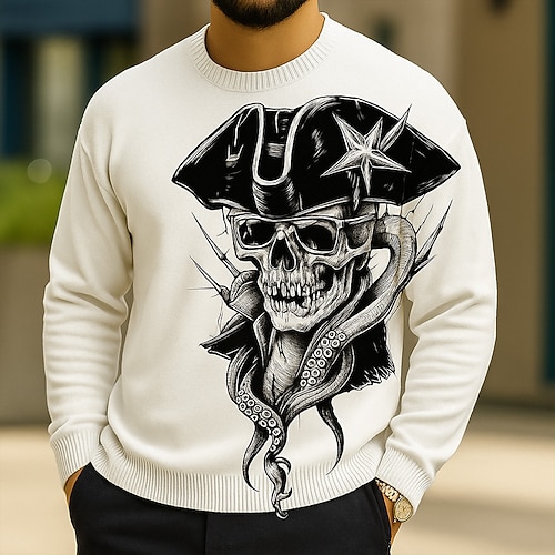 Halloween Per uomo Teschi Maglione Maglieria Girocollo Casual Vacanza Casa Quotidiano Stampa 3D Lavoro a maglia Tenere al caldo Manica Lunga Primavera Autunno Inverno Bianco Blu Verde