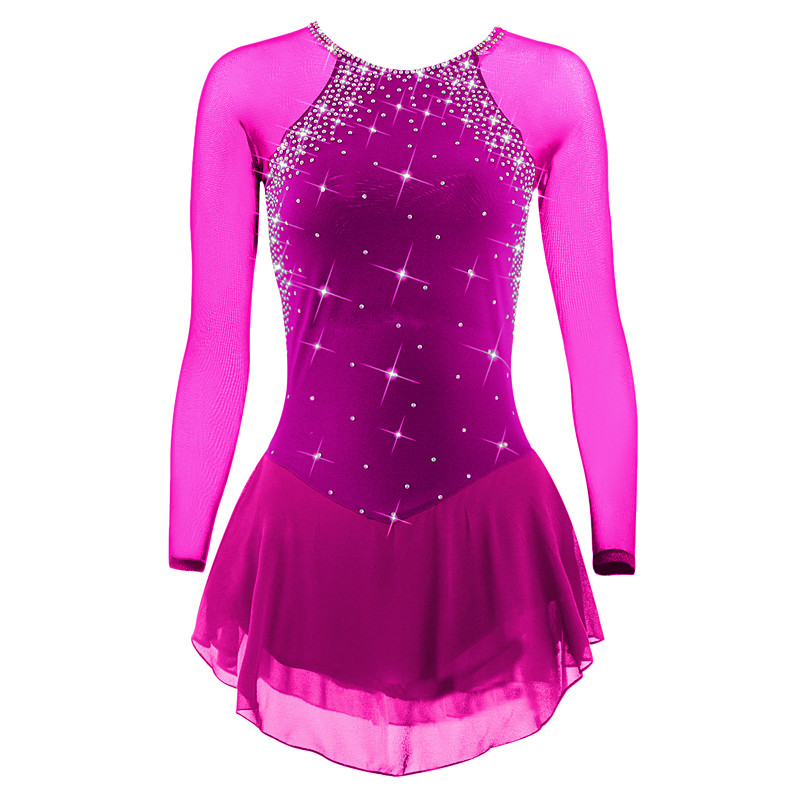 Figure Skating Dress Women's Girls' Ice Skating Dress Violet Rose Red Patchwork Mesh High Elasticity Training Competition Skating Wear Classic Crystal / Rhinestone Long Sleeve Ice Skating Figure