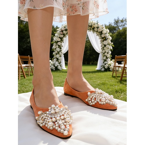 ballerine da donna con punta affilata e decorazioni di perle, eleganti scarpe da sposa slip-on per spose e ospiti, perfette per il giardino all'aperto cerimonie sul prato