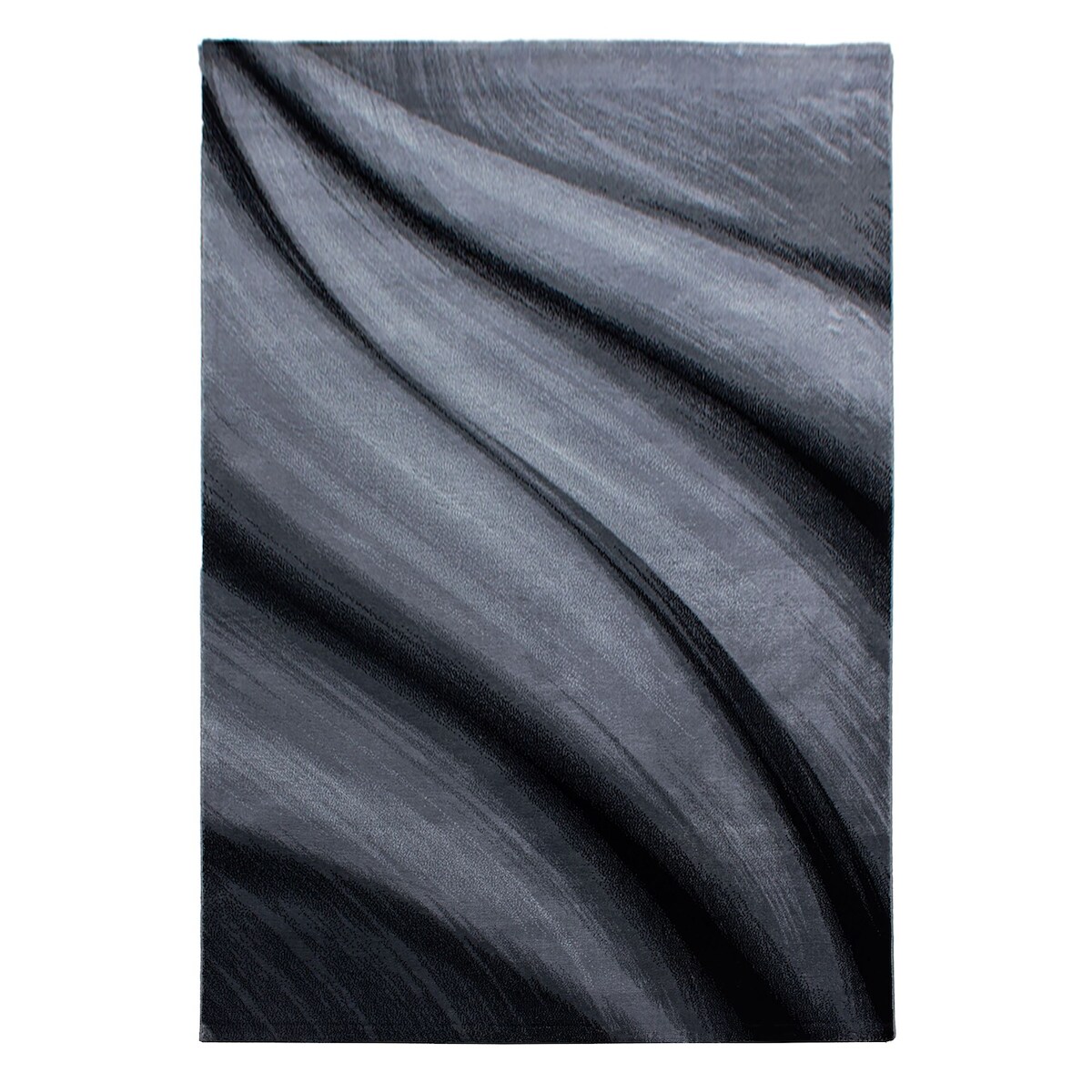 Carpetsale24 Kurzflor Teppich 120x170 cm, Modern Abstrakt Wellen Design in Schwarz Grau, ideal für Wohnbereich, Jugendzimmer oder Essplatz