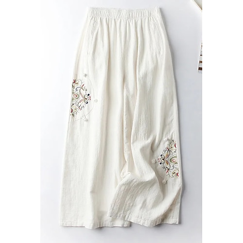 Per donna Pantaloncini in cotone e lino Pantaloni ispirati al lino Pantaloni in cotone e lino Moda Streetwear Lunghezza intera Naturale Geometrico Ricamato Comodo All'aperto Streetwear Uscire Weekend