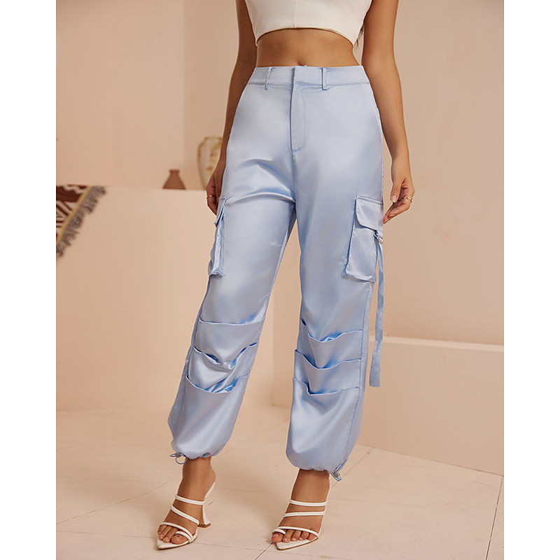Women's Cargo Pants Culottes Wide Leg Chinos Vacation Streetwear Casual Full Length Medium Waist Colorful Pocket Comfy Comfort Micro-elastic Daily Outdoor Street Light Blue Spring Fall Regular Fit