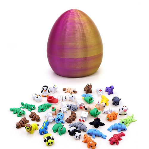 Uovo di Pasqua stampato in 3D con 1 mini animale casuale all'interno, uovo a sorpresa flessibile e articolato, riempitivo per cestini pasquali, regali per bambini, decorazioni per la scrivania di casa