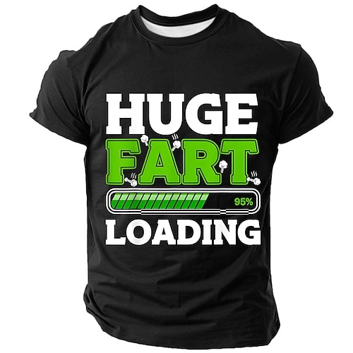 Maglietta Grafica da Uomo Maniche Corte Divertente 'Grandi Scoregge in Caricamento 95%' Umorismo e Gioco di Parole