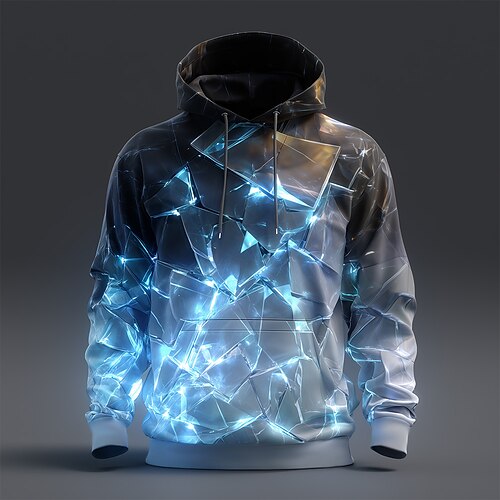 Per uomo Illusione ottica Cubetto di ghiaccio Felpa con Cappuccio Felpa Moda Cool 3D Girocollo Casa Feste Abbigliamento casual alla moda Blu 1 Nero Coulisse Autunno Inverno progettista S M L XL XXL