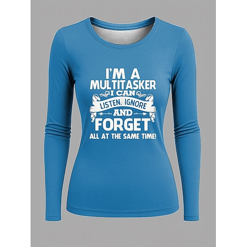 Per donna Maglietta Grafico Lettera Vintage Moda Elegante Manica Lunga Girocollo Top Regolari Quotidiano Weekend Stampato Nero Rosso Blu Grigio Primavera Autunno
