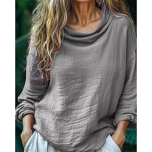 Per donna Blusa Top Eleganti Tinta unica Semplice Elegante Vintage Quotidiano Manica Lunga Collo Alto Top Regolari Lavoro Quotidiano Ferie Arricciato Drappeggiato Blu Rosa cipria Nero Rosa Grigio