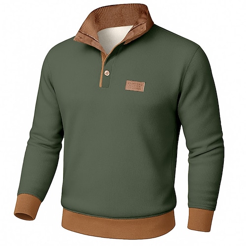 Per uomo Maglia Velluto a coste Felpa in pile Maglione Felpa con cappuccio abbottonata Aalbicocca Nero Verde militare Blu marino Blu Colletto Mao Semplice Patchwork Blocco di colore Testurizzato