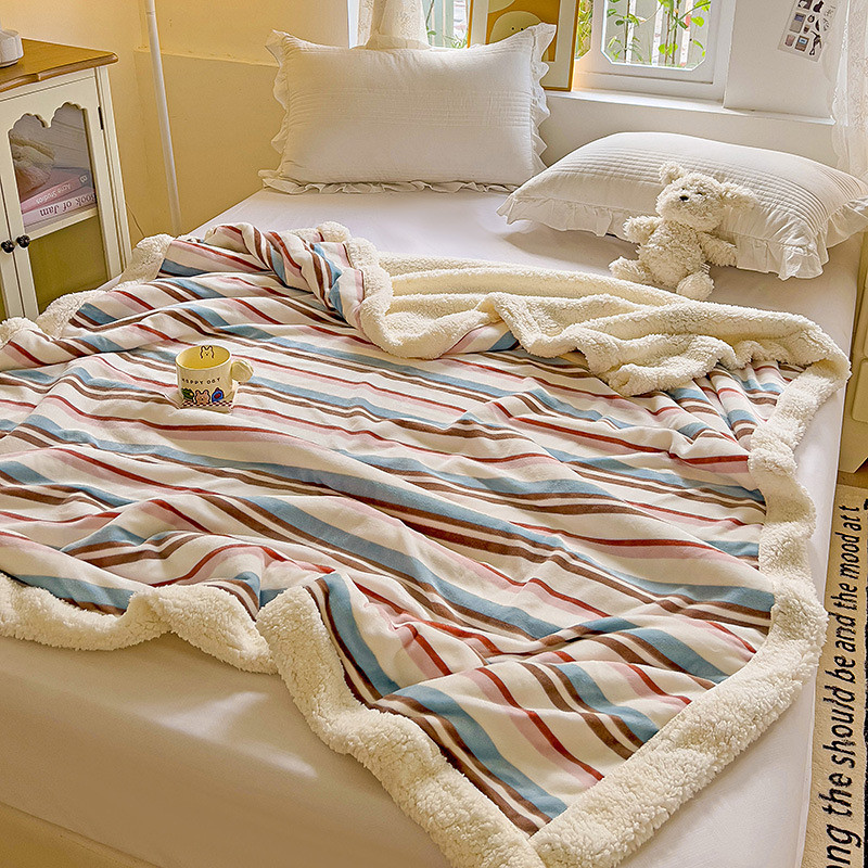 Winter Taffeta Fleece Blanket Thickened Sherpa Coral Fleece Throw Blanket for Office Nap Sofa Bed Warm Soft Cozy Small Blanket