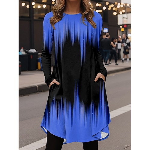 Per donna Mini Abito Vestito T-Shirt Casual Quotidiano Vestibilità regolare Grafico Geometrico Manica Lunga Girocollo Bianco Rosa Rosso Blu reale Primavera Autunno Inverno