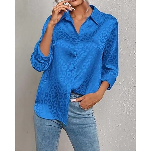 Per donna Top estivi Tinta unica Quotidiano Moderno Manica Lunga Scollo a V Top Regolari Quotidiano Ferie Bottoni Tasca Rosa Blu Reale Viola Fucsia Albicocca Estate