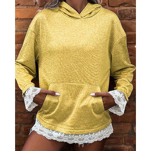 Per donna Felpa con cappuccio Semplice Moderno Casual Manica Lunga Con Cappuccio Top Regolari Streetwear Casuale Sportivo Tasca Glitter Giallo Blu reale Grigio Primavera Autunno