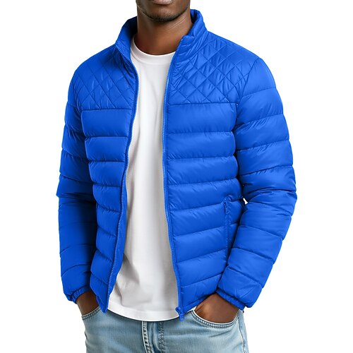 Per uomo Giacca imbottita Giacca di transizione Cerniera completa All'aperto Casuale Regolare Classico Antivento Leggero Inverno Primavera Autunno Tinta unica Nero Rosso Blu marino Blu reale Piumino