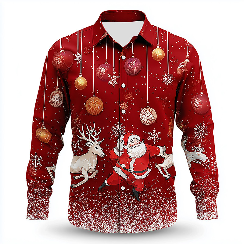 Christmas Men's Santa Claus Christmas Tree Christmas Bell Shirt Button Up Shirt Long Sleeve Funny Outdoor Holiday Spring Fall Turndown 3D Print Collared Shirts Red 1 Red 3 Red Red 2