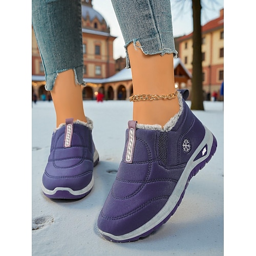 Sneakers invernali da donna in caldo pile foderate in bordeaux - comode scarpe da esterno comode e impermeabili slip-on per il freddo e i viaggi di Natale
