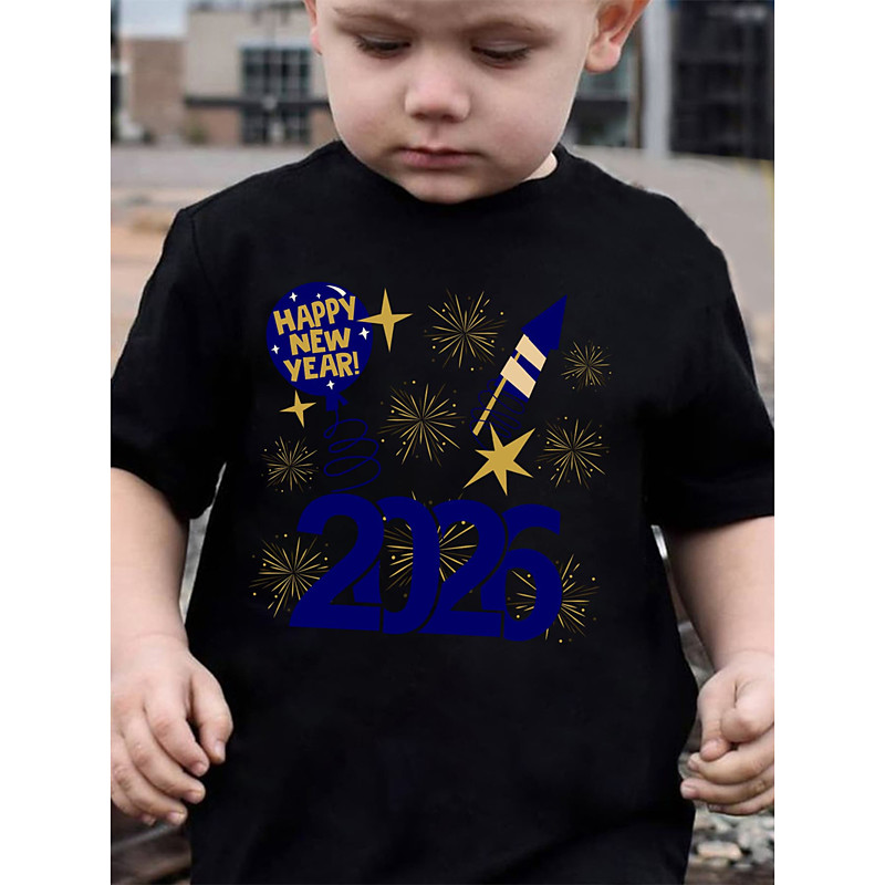 Boys' 3D 2026 New Year'S Party Graphic Letter T shirt Tee Short Sleeve 3D Print Summer Spring Sports Fashion Streetwear Kids 4-12 Years Crew Neck Outdoor Casual Daily Regular Fit