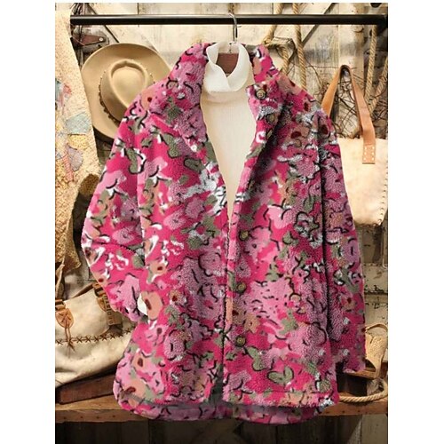 Per donna Cappotto Invernale Giacca Sherpa Confortevole Traspirante Stampato Casual Floreale Vacanza Streetwear Casuale Abbigliamento quotidiano Cerniera Regolare Collo ripiegato Vestibilità comoda