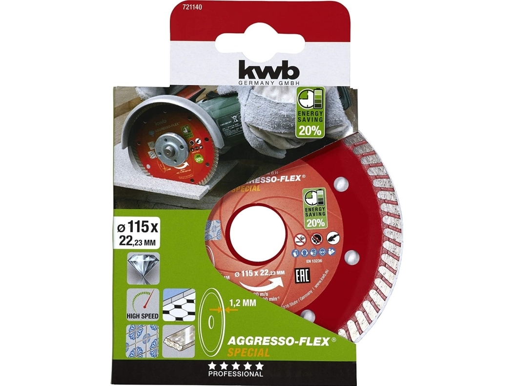 kwb 721140 - Schneidedisk - Beton - Granit - Hartkeramik - Marmor - Naturstein - Stein - Kachel - Jede Marke - 2,2 cm - 11,5 cm - Orange - Rot (721140)