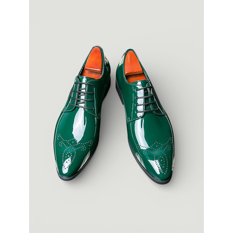 Men's Green Patent Leather Oxford Dress Shoes – Formal Shiny Lace-Up Shoes for Business, Weddings, and Special Events