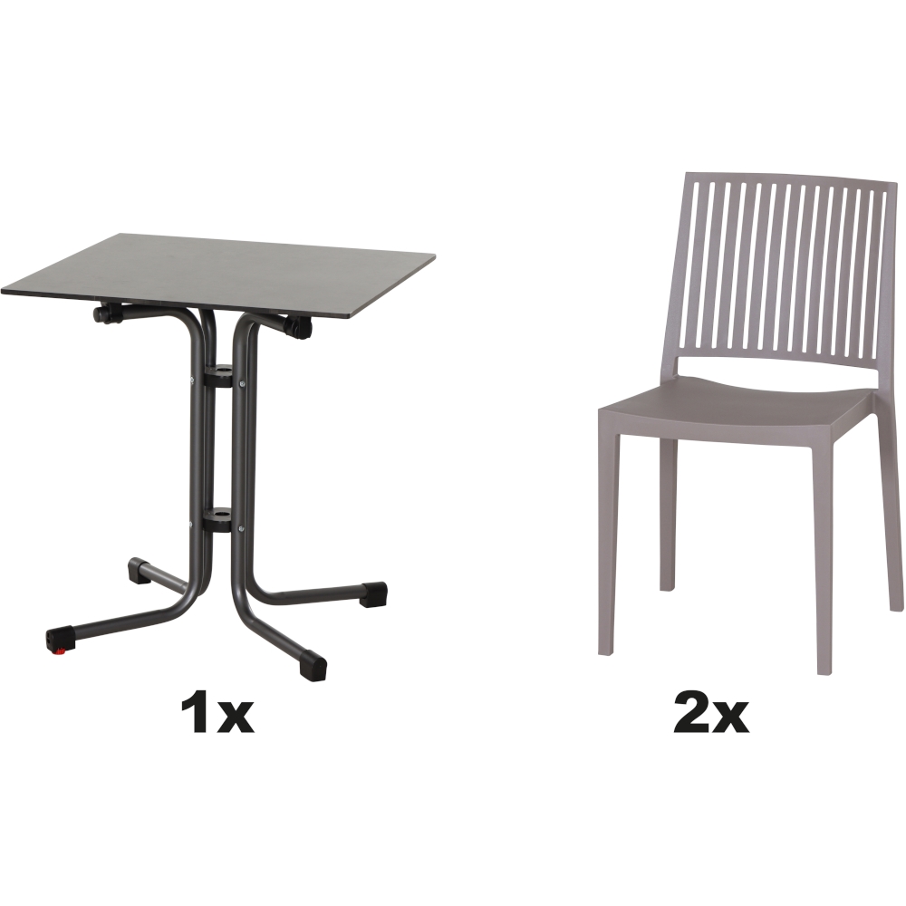 SIENA GARDEN Urban Lights Set 3teilig Lane Stuhl gastrotauglich taupe mit Tisch Sola 65x65