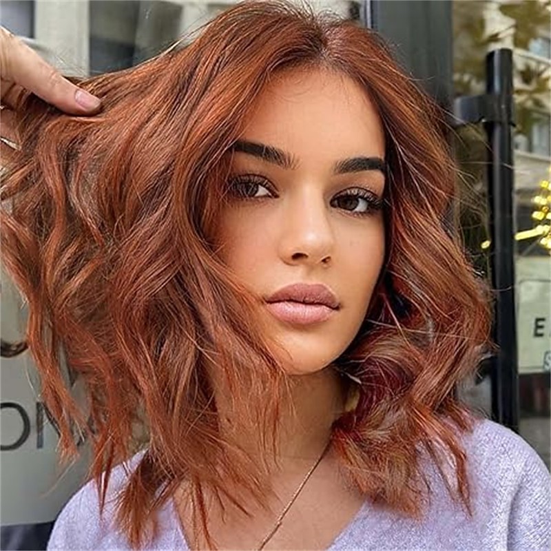 Short Brown Wigs for Women Pixie Cut Wig with Bangs Layered Straight Curly Wigs for White Women Shaggy Full Synthetic Wig Wavy Curly Medium Length Mixed Brown Highlight Wig For Daily Party