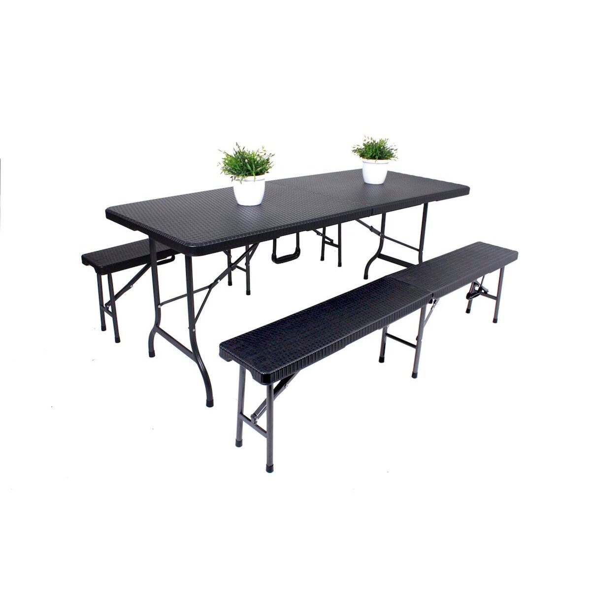 Gravidus 3-tlg. Tisch-Set Sitzgruppe Gartengruppe Tisch Bank Rattan-Optik