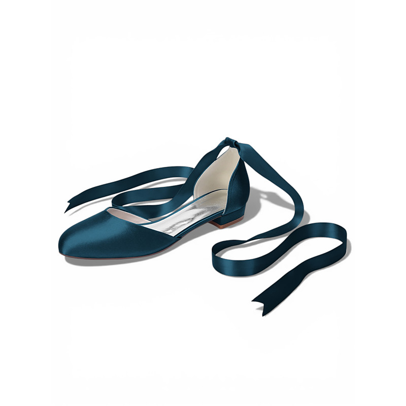 Women's Multicolor Satin Ankle-Tie Flats, Elegant Pointed-Toe Bridesmaid Shoes for Outdoor Lawn Weddings