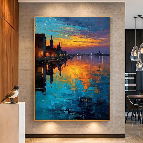dipinto a olio fatto a mano su tela decorazione da parete impressione paesaggio città europea vista porto soggiorno ingresso decorazione arredamento casa dipinto arrotolato senza cornice non teso