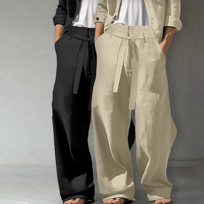 Women's Faux Cotton Linen Wide Leg Chinos Fashion Streetwear Simple Ankle-Length High Waist Plain Maillard Pocket Elastic Waist Baggy Comfort Breathability Soft Micro-elastic Daily Vacation Daily Wear