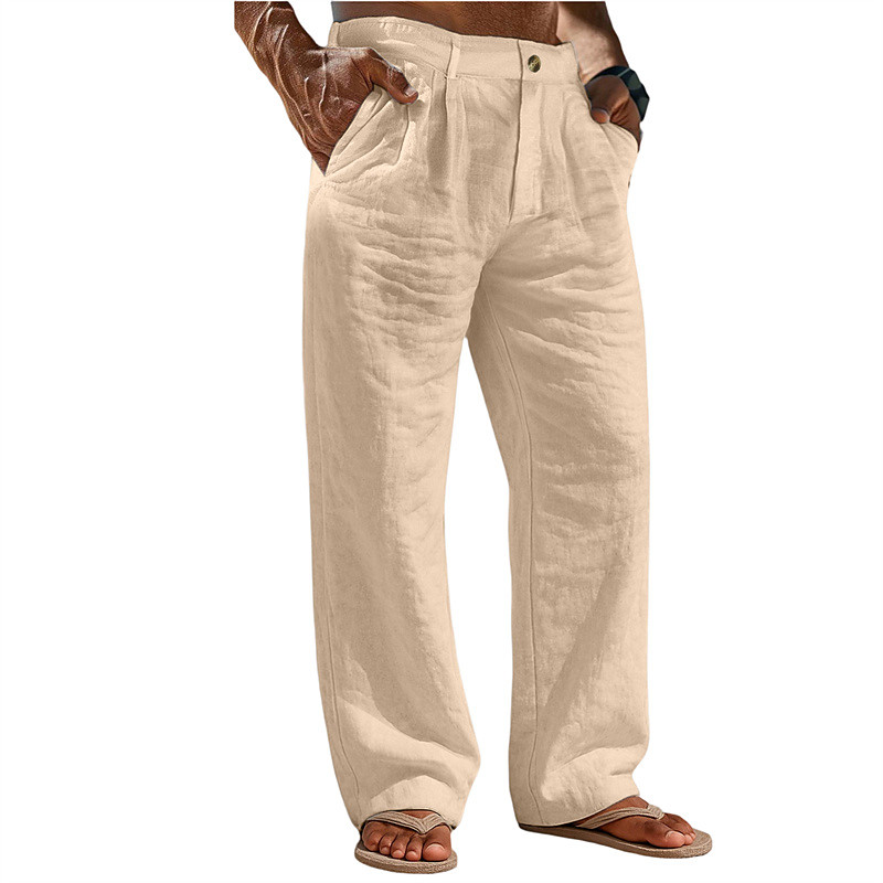 Men's Cotton Linen Pants Trousers Summer Pants Baggy Pants Beach Pants Pocket Solid Color Comfort Breathable Daily Outdoor Beach Vacation Fashion Black White Inelastic