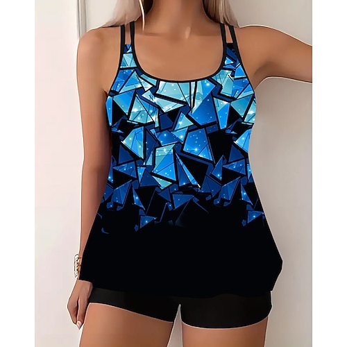Per donna Costumi da bagno Due pezzi Shorts Costume da bagno Senza schiena Vacanza Abbigliamento da Spiaggia Grafico Girocollo Senza Maniche Costumi da bagno