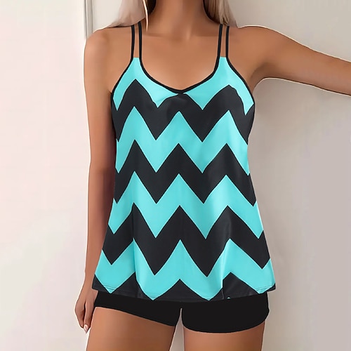 Per donna Costumi da bagno Due pezzi Shorts Costume da bagno Senza schiena Vacanza Abbigliamento da Spiaggia Geometrico Scollo a V Senza Maniche Costumi da bagno