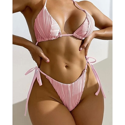 Per donna Costumi da bagno Bikini Due pezzi Birichino Costume da bagno Senza schiena Vacanza Abbigliamento da Spiaggia Tinta unica All'americana Senza Maniche Costumi da bagno