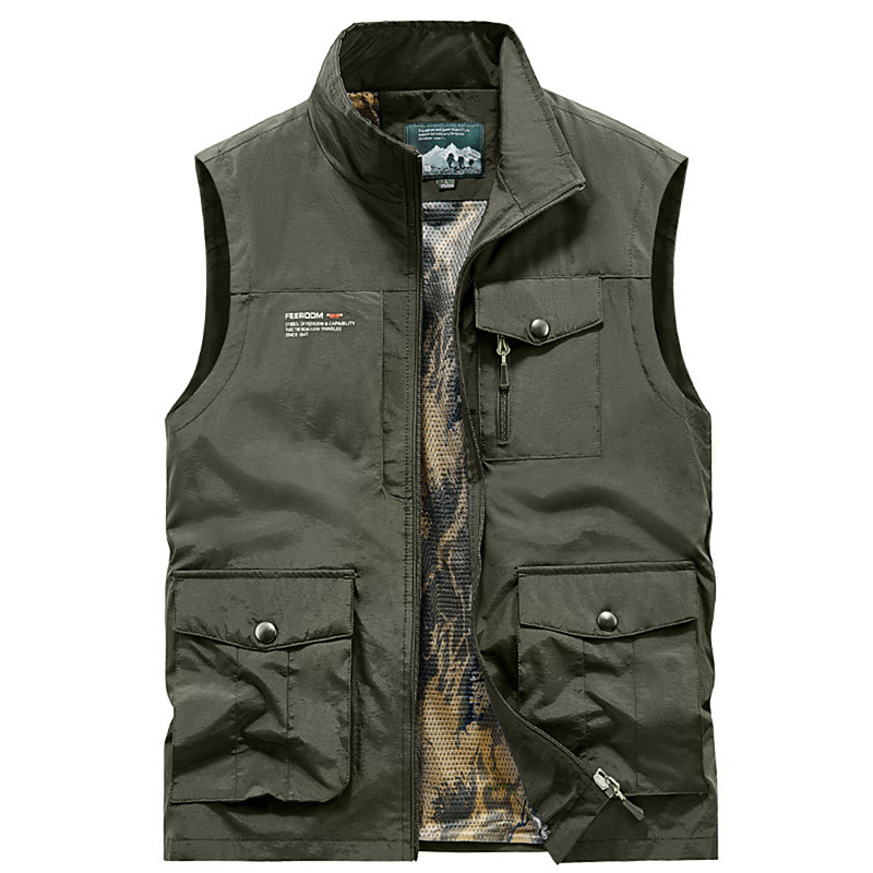Men's Cargo Vest Utility Vest Sleeveless Vest Outdoor Waterproof Windproof Zipper Pocket Nylon Black Army Green Blue Hunting Fishing Climbing
