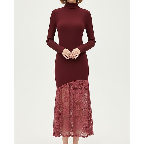Per donna Abito Midi Abito in maglia Elegante Moda Moderno Quotidiano Vacanza Uscire Vestibilità regolare Semplice Manica Lunga Dolcevita Vino Autunno Inverno