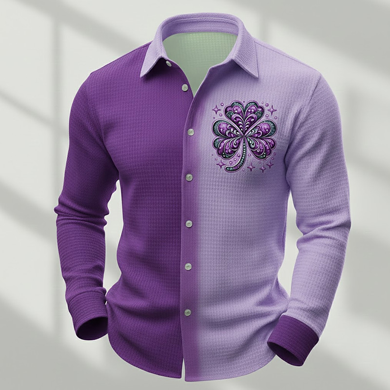 St. Patrick's Day Men's Shamrock Gradient Color Shirt Waffle Shirt Casual Shirt Long Sleeve Vintage Retro Holiday Summer Spring Turndown 3D Print Textured Button Up Shirts Blue Purple Green