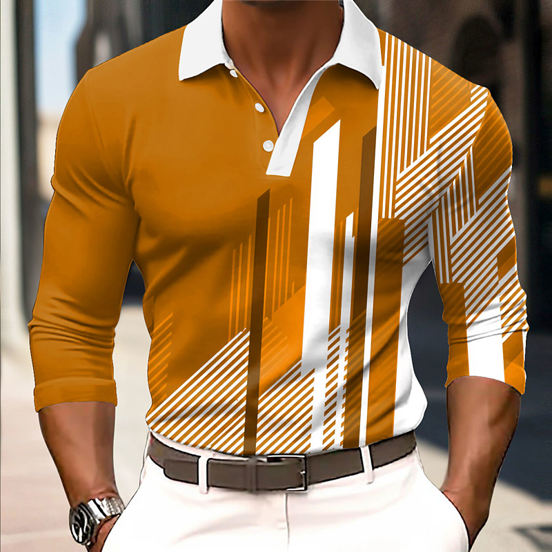 Men's Geometic Polo Long Sleeve Polo Shirts Collared Shirts Business Casual Business Athleisure Daily Wear 3D Print Buttons Spring Fall Winter Red Blue Orange