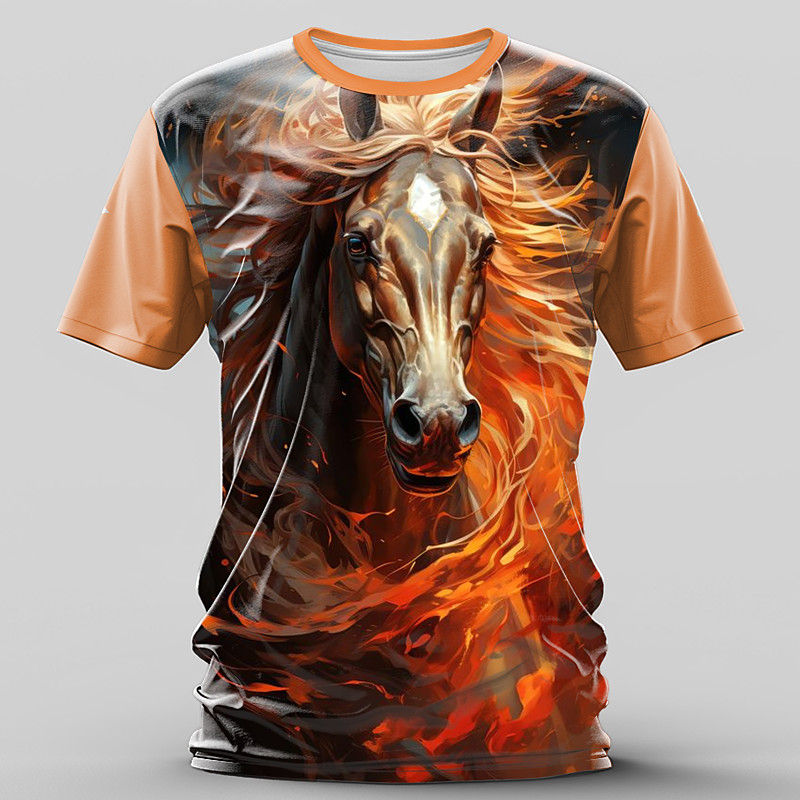 Men's Graphic Horse T Shirt Short Sleeve T shirt 3D Print Crew Neck Shirt Retro Vintage Casual Street Style Sports Outdoor Holiday Going out Red Blue Orange Spring Summer Clothing Apparel S M L XL
