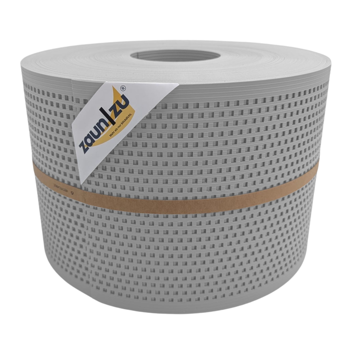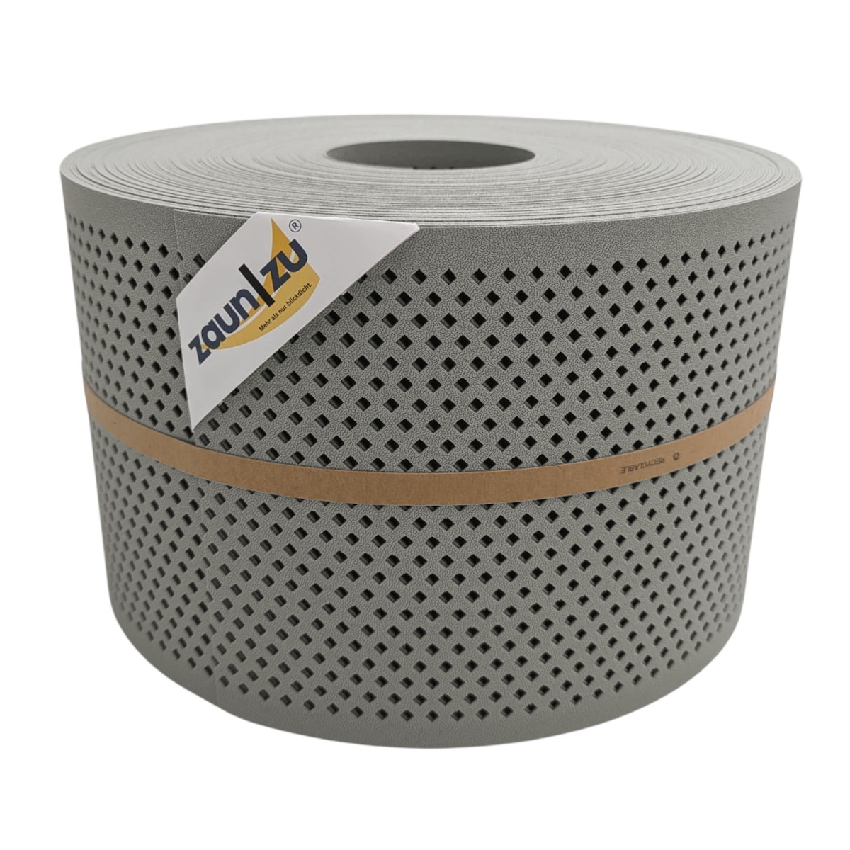 zaun|zu® Sichtschutzstreifen Rille Gelocht Quadrat-Muster für Doppelstabmatten Lichtgrau 50m