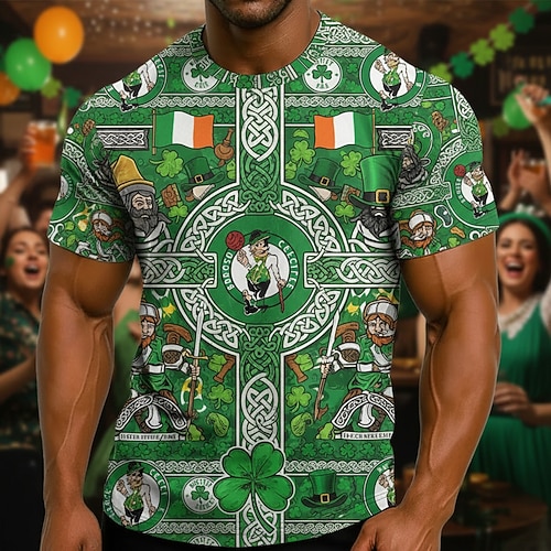maglietta da uomo per la festa di San Patrizio maglietta grafica trifoglio girocollo abbigliamento stampa 3D stampa quotidiana a maniche corte per la festa di San Patrizio moda vintage