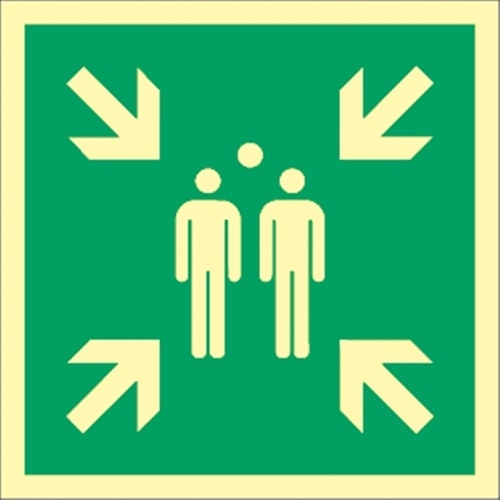 Schild Sammelstelle, ISO 7010, Alu, langnachleuchtend, 160-mcd, 400x400 mm