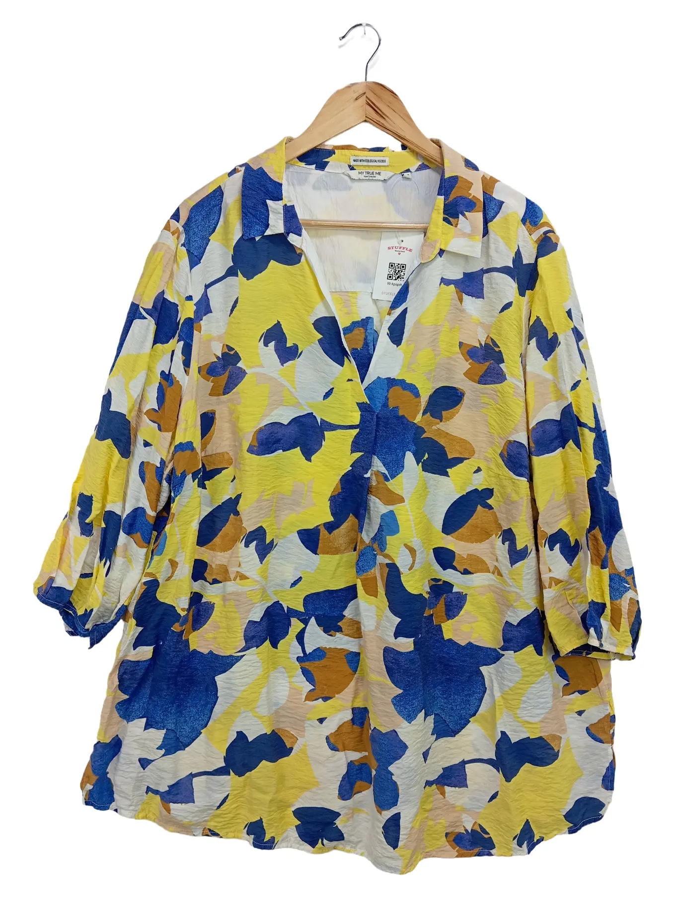 TOM TAILOR Damen Bluse Gr.52 XXL Gelb Blau Blumenmuster