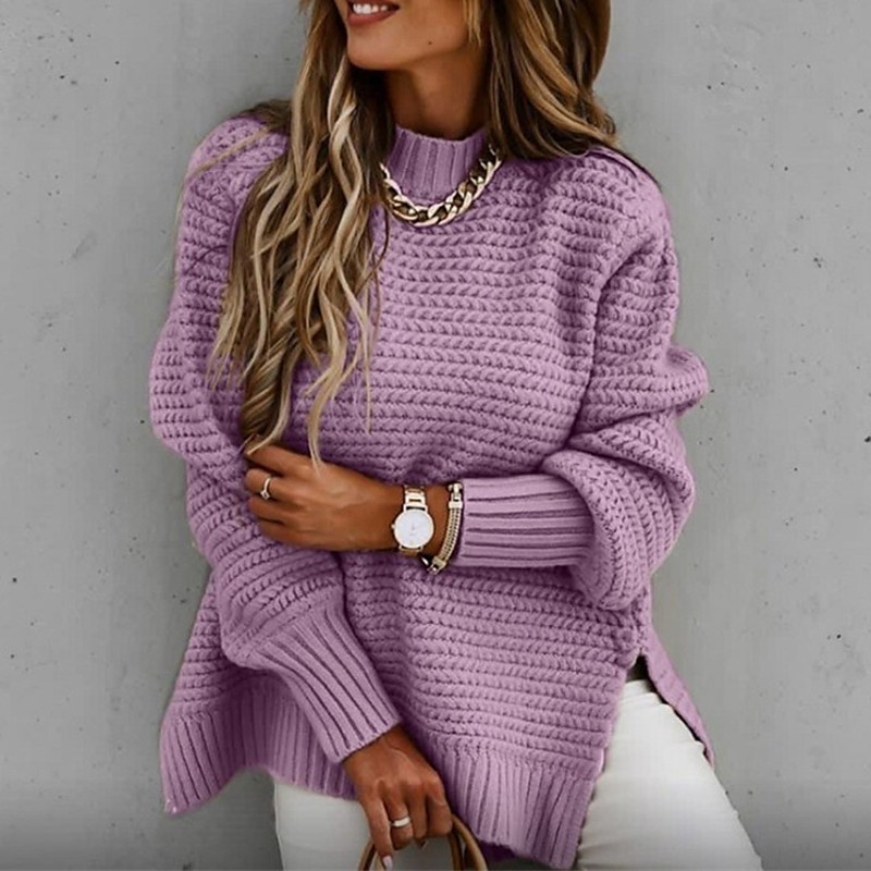 Women's Sweater Fashion Casual Pure Color Ribbed Crew Neck Mock Neck Knitted Long Sleeve Regular Tops Knit Outdoor Daily Weekend Black Pink Fall Winter