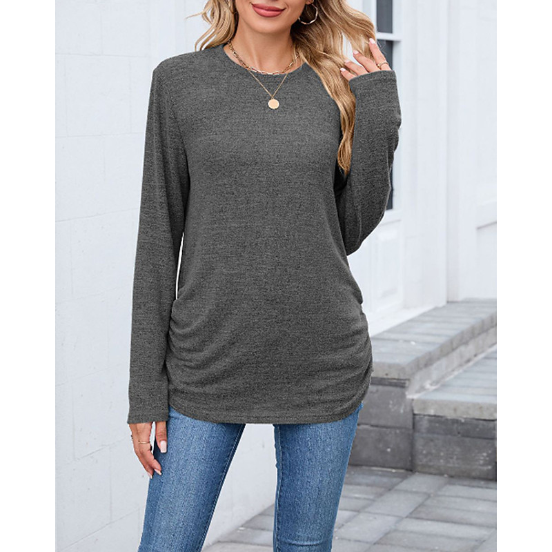 Women's Texture Blouse T Shirt Plain Casual Long Sleeve Crew Neck Regular Tops Daily Weekend Black Wine Army Green Blue Brown Fall