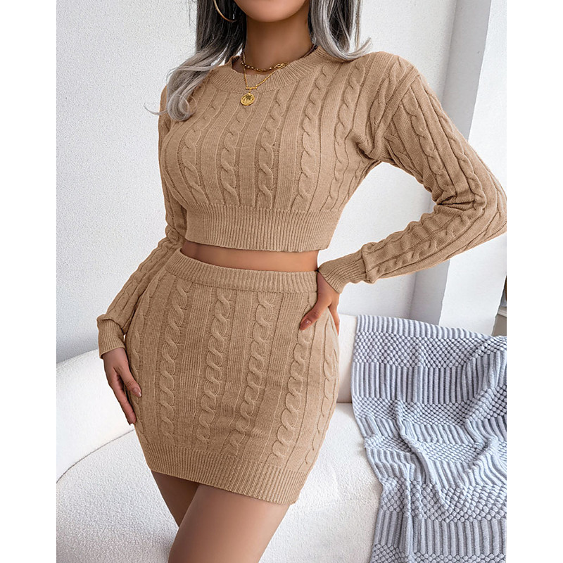 Women's Active Streetwear Skirt Sets Bolero Top Long Sleeve Crew Neck Solid Color Outdoor Vacation Daily White Pink Khaki Fall Regular Fit