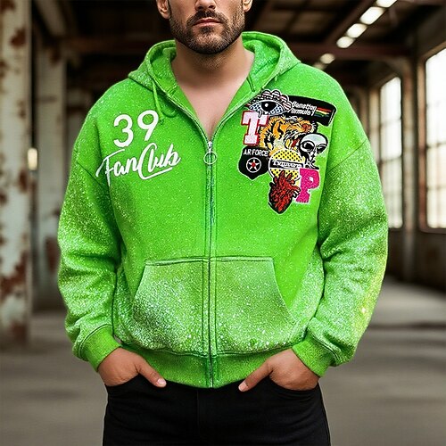 Per uomo Grafico Felpa con Cappuccio Moda Quotidiano Casual Manica Lunga Con Cappuccio All'aperto Vacanza Abbigliamento casual alla moda Festival Blu Viola Verde Con zip Tasca Stampa Primavera Autunno