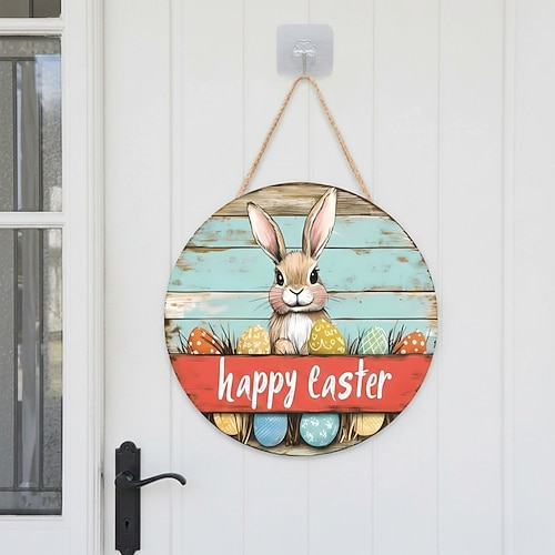 cartello pasquale in legno coniglietto benvenuto appendino porta atmosfera festiva decorazione murale sfondo festa di primavera decorazione artigianato in legno fatto a mano per casa o veranda